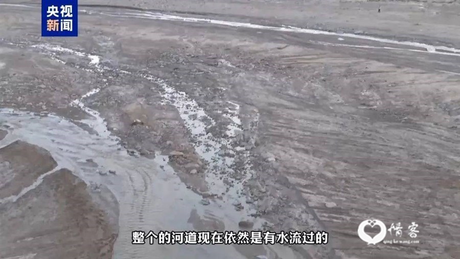 记者在现场看到,洪水已基本退去,局部低洼地势汇聚了积水,救援人员正抓紧时间排水。原本平整的地面被洪水冲刷后,到处是纵横交错的车辙痕迹和厚厚的淤泥,淤泥上能看到车辆残骸和掉落的轮胎。