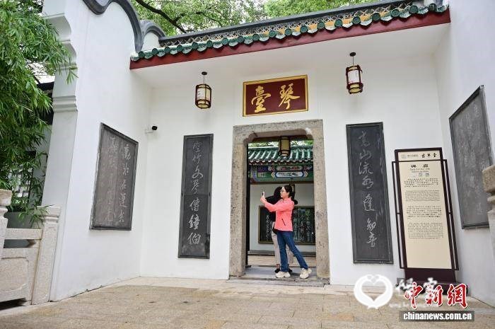步入古琴台,知音馆、高山流水馆、琴园、琴堂等处处“诉说”知音传奇、呈现古琴史话。琴堂定期举办古琴演奏,带来《高山流水》《秋风辞》等名曲。