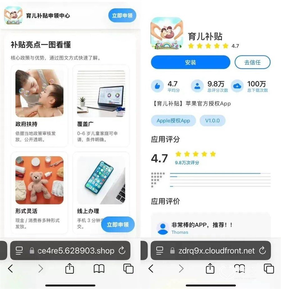▲打开“育儿补贴.top”网址,有看似相关政策的介绍,但实际上会引流至未知软件。 图源:网络截图