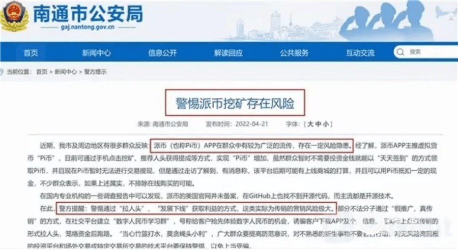 在2023年的央视报道中,Pi币曾被公安质疑带有诈骗属性。