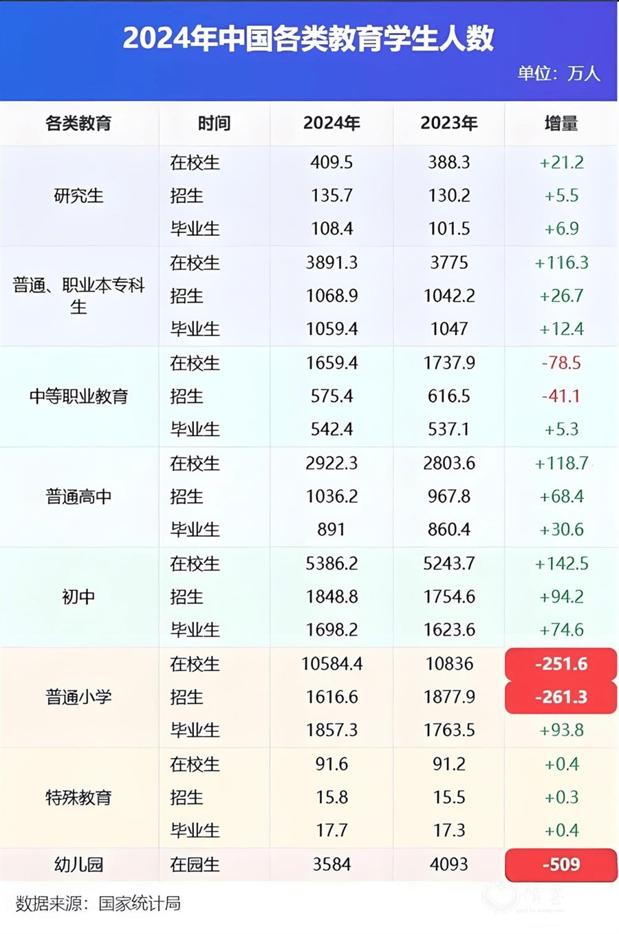 换句话说,今天小学在“历劫”,明天轮到初中,高中、大学也难逃“瘦身”命运。