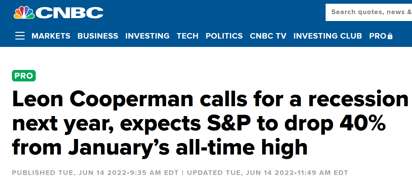 据外媒报道,Omega Advisors公司董事长Leon Cooperman接受CNBC采访时表示,油价或美联储的政策在明年或使美国经济陷入衰退,预计标普指数将从1月份的历史高点下跌40%。