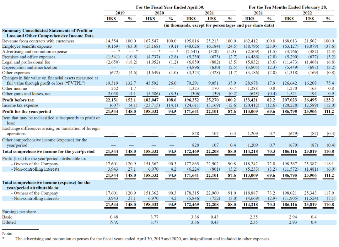 尚乘数科招股书显示,2019财年、2020财年及2021财年,尚乘数科总收入分别约为1455.4万港元、1.68亿港元和1.96亿港元;期内利润分别为2154.4万港元、1.58亿港元及1.72亿港元。公司利润率保持高达87%以上。